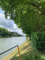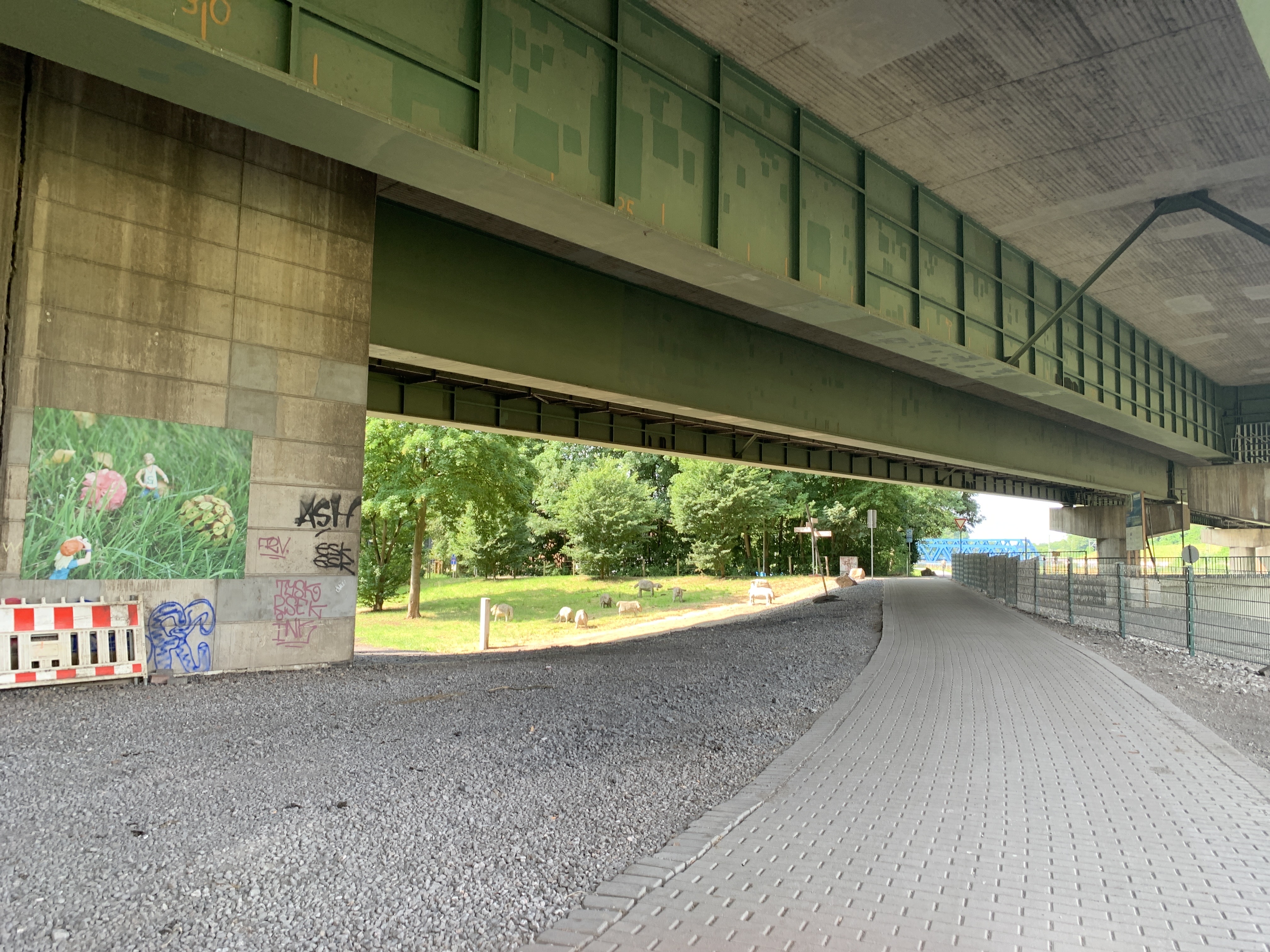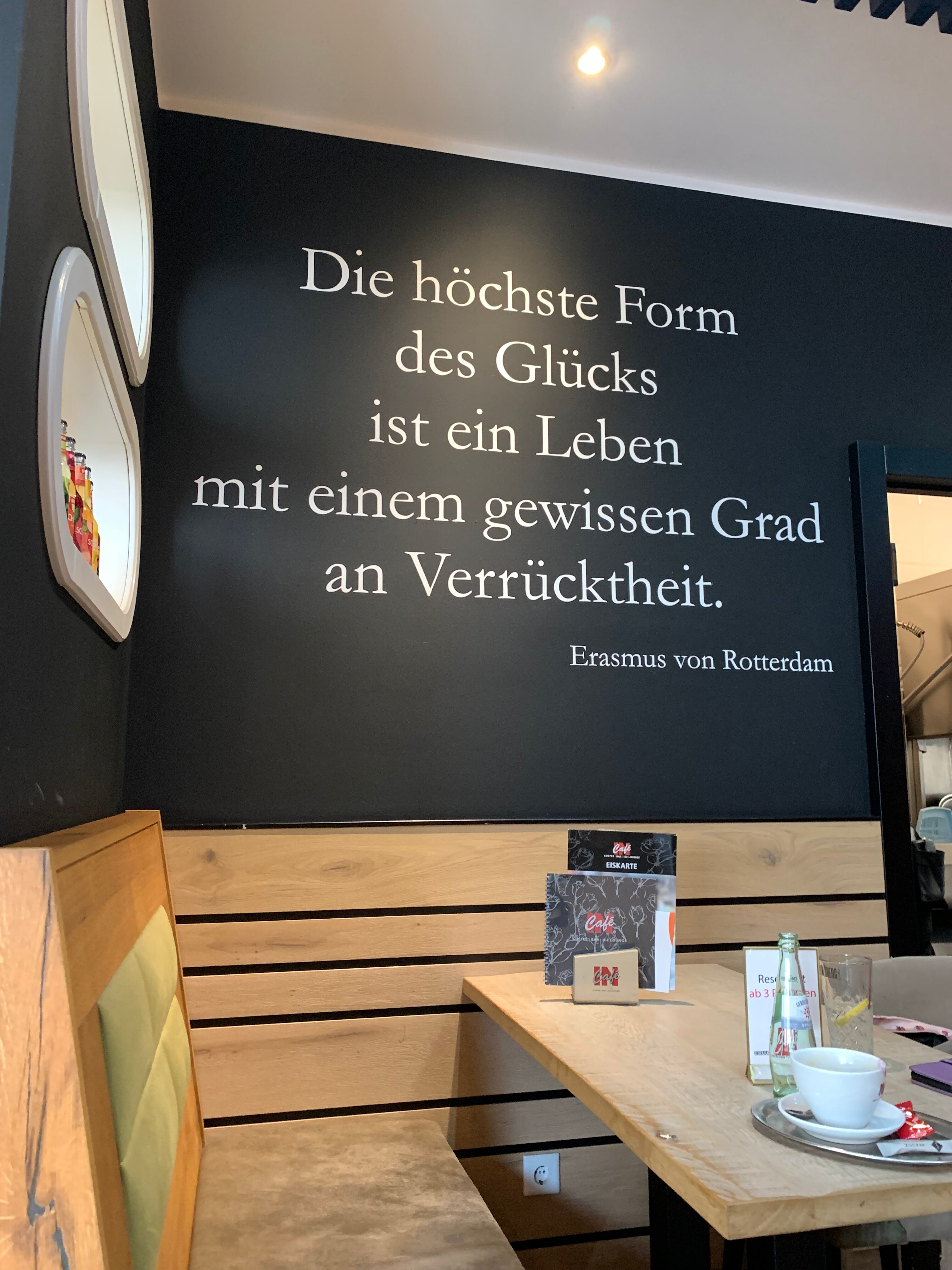 Der Weg hat mich dann an Marx und Lenin, dem letzten Grubenpferd, über ein Festivalgelände geführt. Dann ging es entlang der Emscher, dem Rhein-Herne-Kanal und die Ruhr quer durchs Ruhrgebiet. Stellenweise war der Ruhrradweg gesperrt und Umleitungen etwas verzickt. Aber irgendwann war ich beim "Ruhrorange" - den Ort kannte ich von einer früheren Tour mit Stephan und ich hatte eine schöne Mittagspause. Ein Hotel hat in Krefeld-Uerdingen auf mich gewartet. Ein freundlicher Grieche hat mir seine Geschichte erzählt und von den Problemen, die er hatte eine gute Behandlung für die gesundheitlichen Probleme seiner Mutter in Deutschland zu finden. In Griechenland seit das einfacher gewesen. Habe nicht rausgefunden, was da schief gelaufen ist. Aber im Ort habe ich einen prima Kaffee bekommen - erbauliche Sprüche an den Wänden dazu.